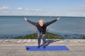 Spreidt tegelijkertijd de armen zijwaarts, kijk naar voren, en uitademend