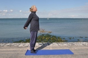 Ga zo door op jouw adem ritme en forceer niks. Soms kan een kleine beweging al ruim voldoende zijn. Deze oefening maakt je bewust van eventuele stijfheid en spanningen in het gebied tussen de schouderbladen. Liever oefen je elke dag, in plaats van vele malen per keer.